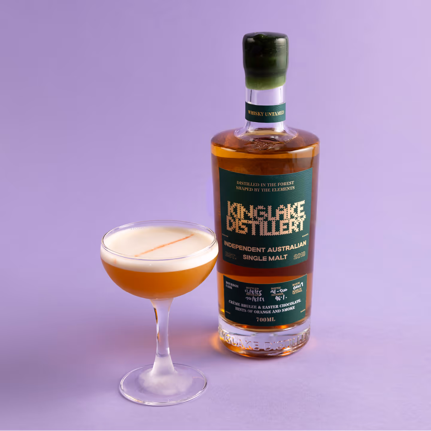Kinglake 'Bourbon Cask' single malt whisky, Cynar, lemon, whole mandarin