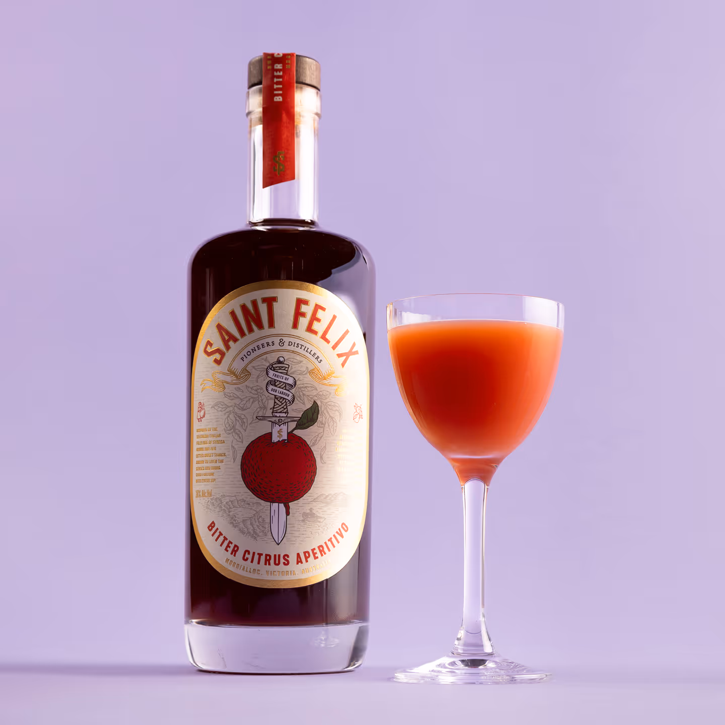 Saint Felix Bitter Citrus Aperitivo, Starward ‘Nova’ Whisky, lemon juice, Autonomy Native Amaro, tangelo oleo saccharum