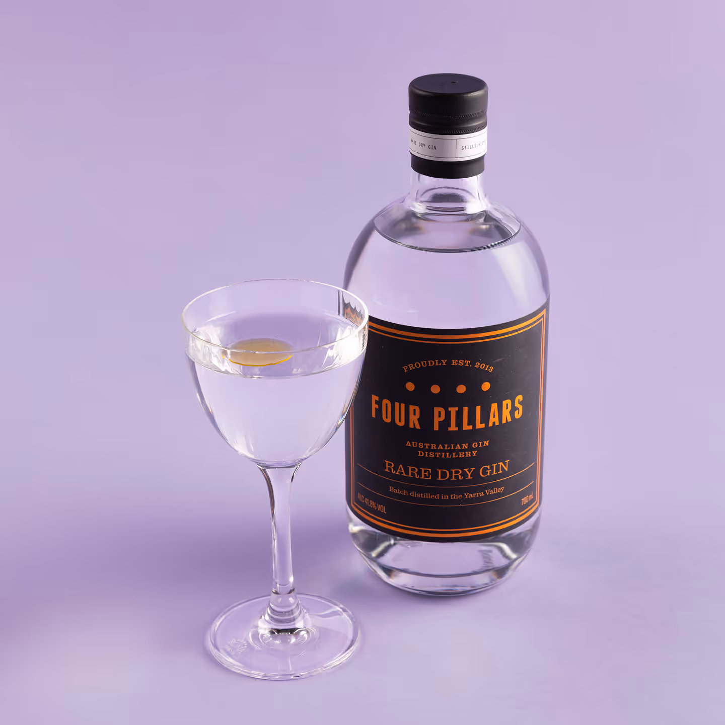 EVOO-washed Four Pillars Rare Dry Gin, Maidenii Dry Vermouth, filtered rainwater