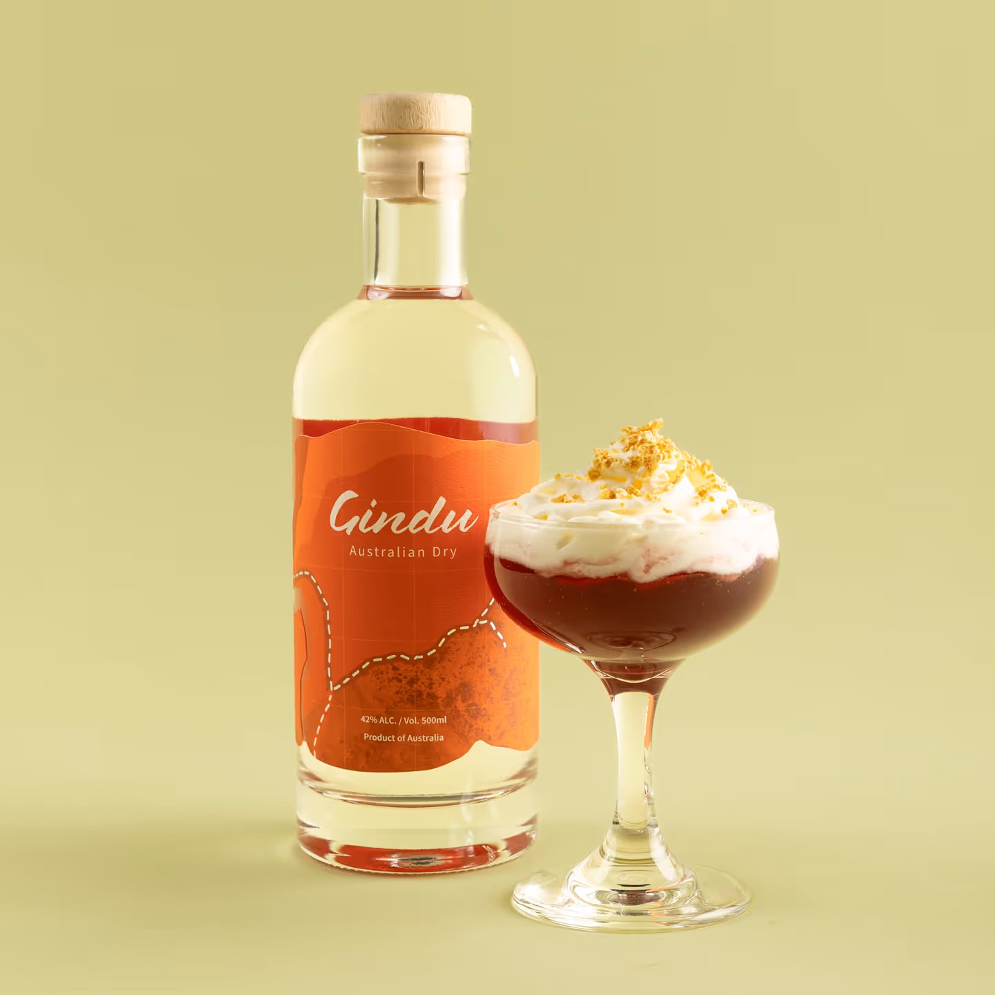 Gindu Australian Dry Gin, Stachehouse mulberry liqueur, yoghurt foam