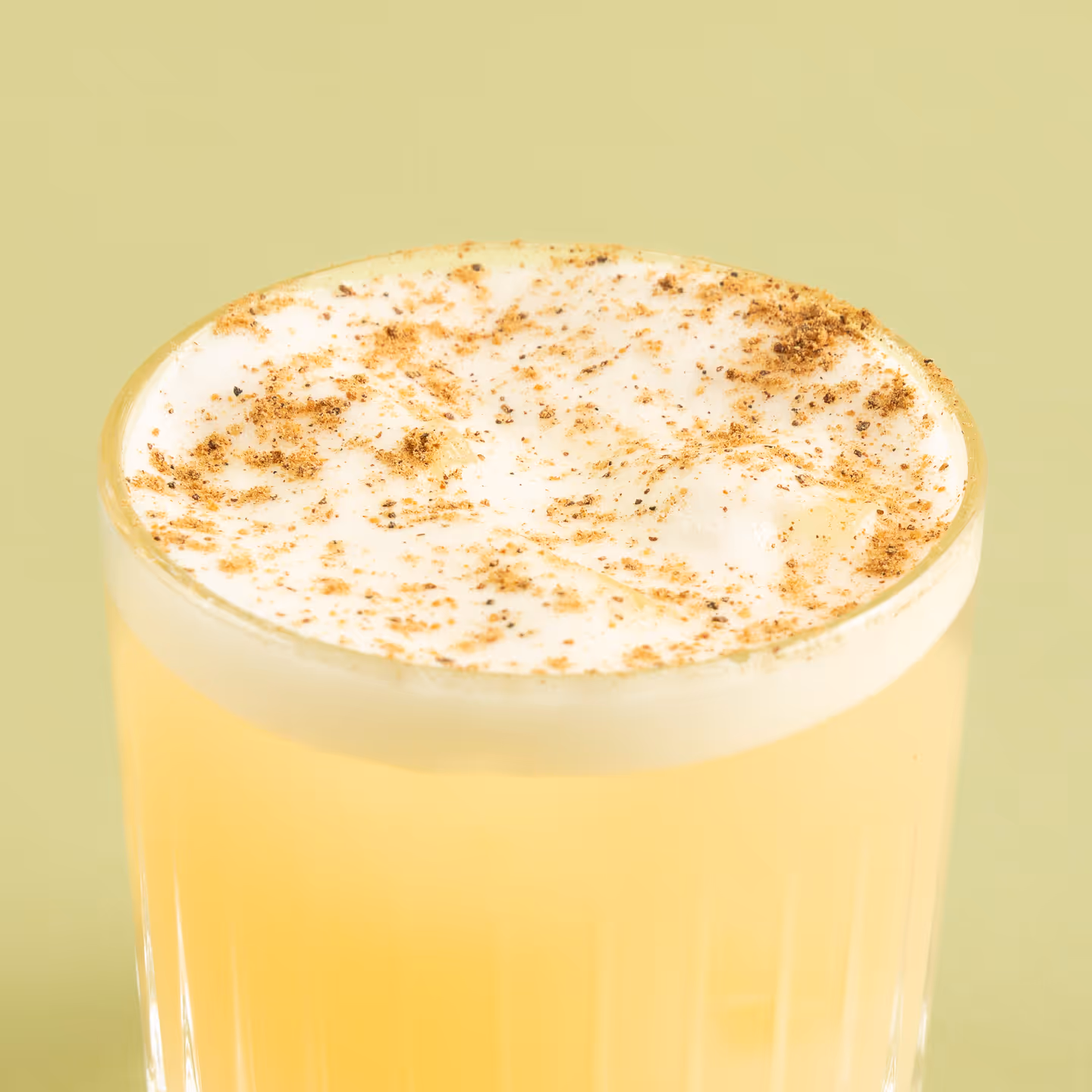 Swiftcrest Distillery Dutch Apple Pie Moonshine, agave, lemon, Fin Wines Pet-Nat, Laphroaig Rinse