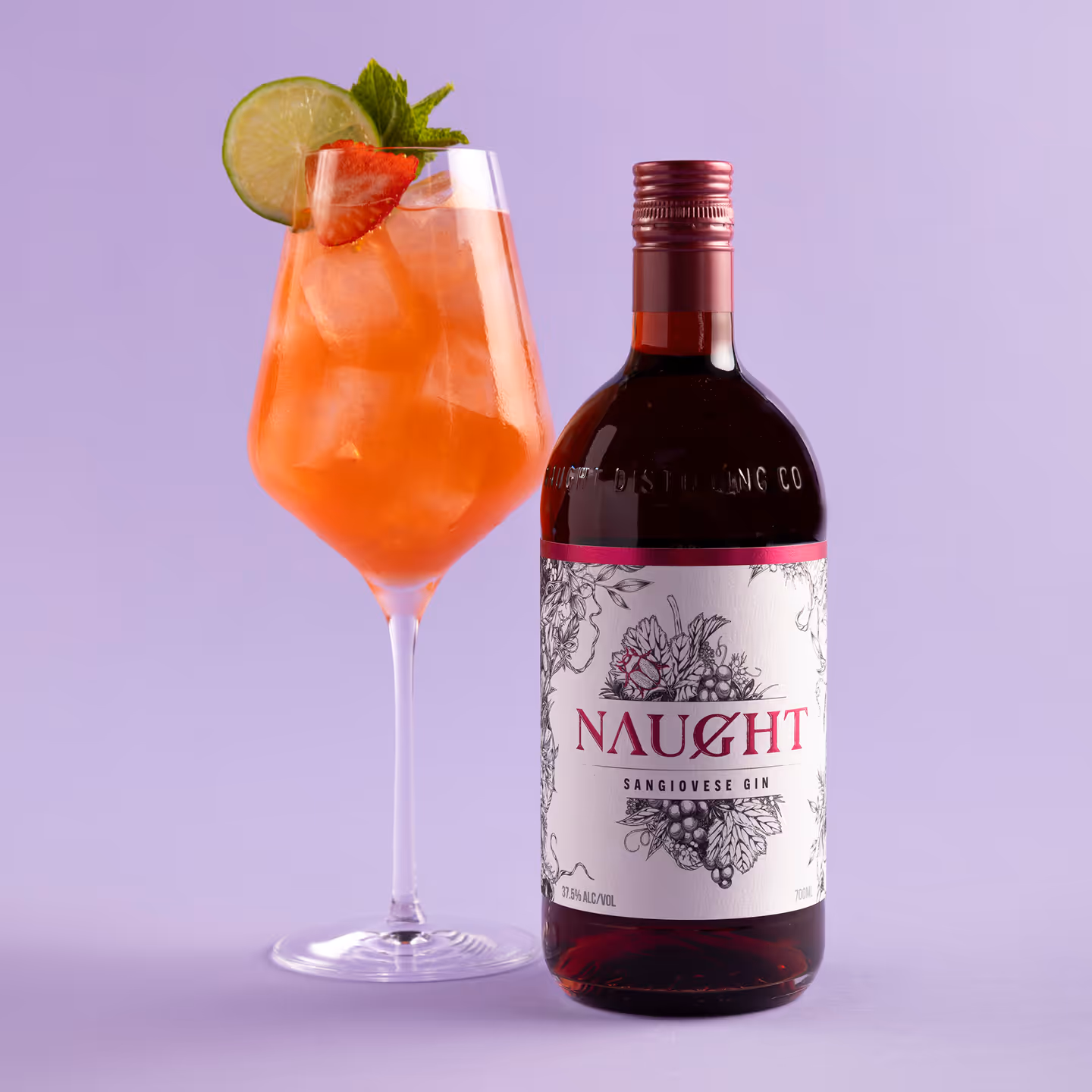 Naught Sangiovese Gin, lime x lemon, honey strawberry syrup, lemonade